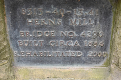 The Herns Mill Bridge originally cost $800. Renovations were made in 2000 with concrete abutments, steel I-beams, guard walls, portal timbers, a new metal roof and siding to ensure the cover bridge's longevity.