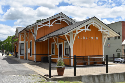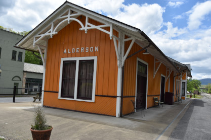 Chesapeake and Ohio Alderson station. The Alderson station consists of a platform and shelter adjacent to the historic depot. Amtrak began serving the community on April 29, 1979 via its Cardinal service.