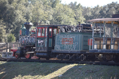Six Gun Territory 4-4-0 No. 4 "General Sam Houston" built by Crown Metal Products in 1964. After Six Gun Terrirtory closed in the mid-1980's, this and another were sold at auction, going to Jefferson Inn in Jefferson, Texas before being acquired by Kirby Family Farm.