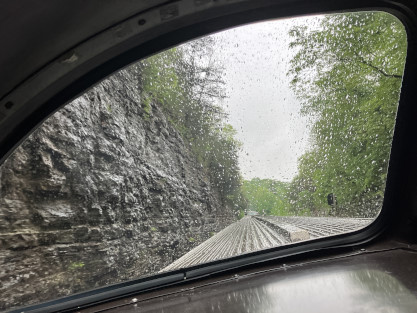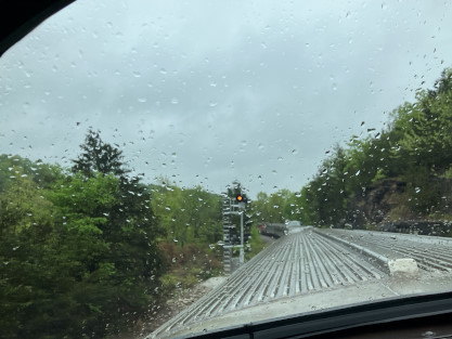 We ran south through the curves on a wet day.