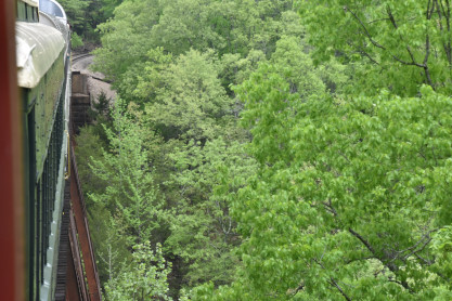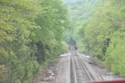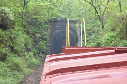 Entering Crest Tunnel, a 3,485 foot bore completed in 1903 on this end of the railroad.