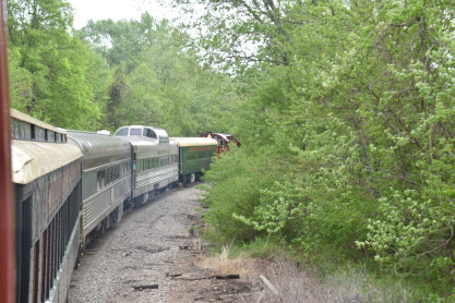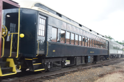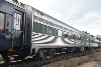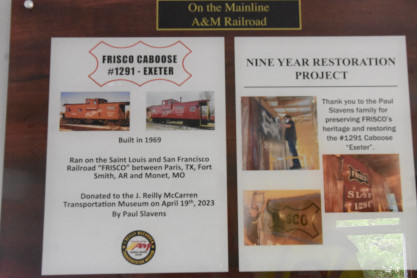 In 2014, he had met someone at a Joplin model railroad show. Fast-forward to 2021, that person informed him that A&M was seeking a Frisco caboose, Slavens got in Arkansas and Missouri coach 105 "Golden Age" built by Harlan and Hollingsworth in 1927 for the Central Railroad of New Jersey and this car was used in commuter service for years. Arkansas and Missouri diner-lounge 109 built by Budd in 1950 as Southern Pacific coffee shop-lounge 10409 "Pride of Texas". The car became Amtrak 8322 in 1971. Amtrak sold the car to Ohio Central and in 2014, it was acquired by