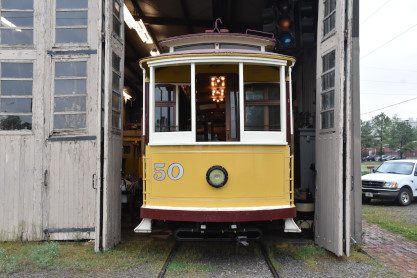 Hot Springs Street Railway double-ended double-truck open platform streetcar 50 built by St. Louis Car Company in 1904.