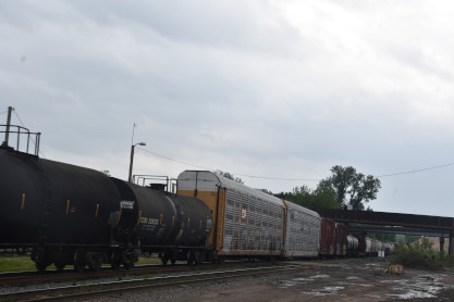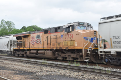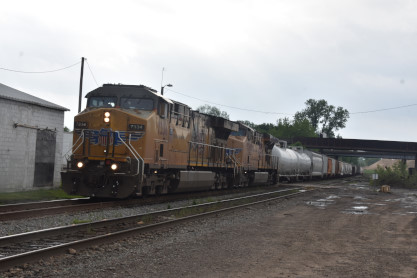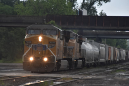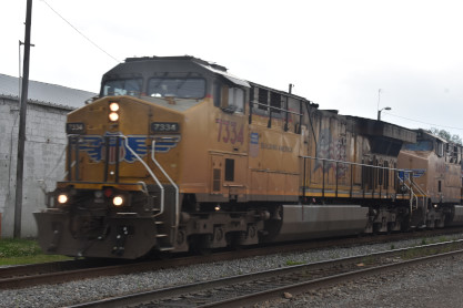 Union Pacific 7334 West with mid-train DPU 7731 and the rear of this train. We then returned to the station.