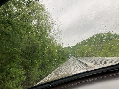 4/25/2024 We left Columbia and Elizabeth drove us to the rest area on Interstate 44 then I drove us through the rains to Branson, where we parked in their parking lot and since it was raining, I decided to leave my camera in the car.