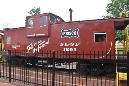 St.Louis-San Francisco caboose 1291, which was later Burlington Northern. The railroad retired most cabooses in the mid-1980's and donated 1291, built in the late 1960's to Exeter, along the Monett―Fort Smith route. Small towns that received such donations would find over the ensuing decades that the cabooses were targets of vandalism, and that upkeep was expensive.