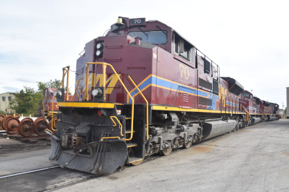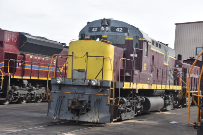 Arkansas and Missouri C-420 42, ex. Ohio Central 7220, nee Erie Mining 600, built by American Locomotive Company in 1965.