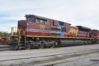 Arkansas and Missouri C-424 34, ex. Arkansas and Missouri 02, nee Belt Railroad of Chicago 602, built by American Locomotive Company in 1965.