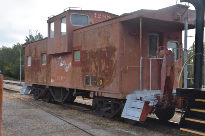 St. Louis and San Francisco caboose 1288 built by International Car Company in 1969 and retired in 1986. It had the distinction of never being painted in Burlington colours but was originally painted red before the mandarin orange and white of Frisco. Upon retirement, it was donated to the City of Ash Grove, Missouri to be displayed in a city park then was purchased by Paul Slavens of Tulsa, Oklahoma in February 2014 before being donated to the Arkansas and Missouri Railroad in 2023.