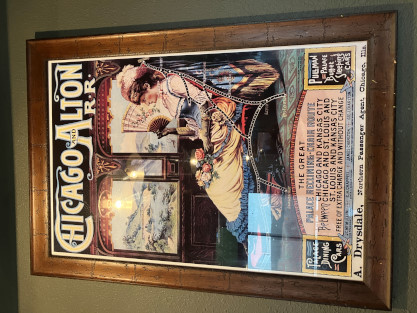 Chicago and Alton Railroad "The Great Palace Reclining-Chair Route". Both of these posters were above our table.