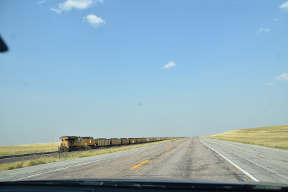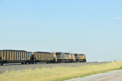 Along Wyoming Highway 20, we caught up to an eastbound coal train and it took a few minutes before we could get some pictures.