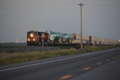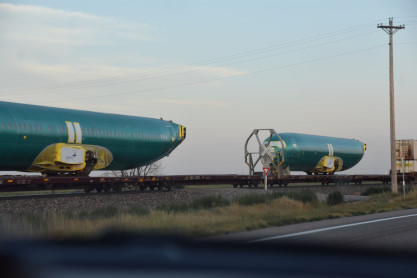 Boeing 737 fuselages were on the first two cars of this stack train.