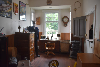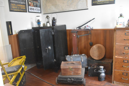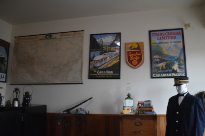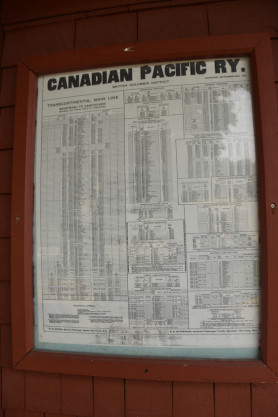 Built in the wye of the tracks, the station had a second storey with living quarters for the station agent and his family. The first station burned to the ground in the late winter of 1906 as Station Agent Harry Gage and his family escaped with only their night clothes and one mattress in which Mrs. Gage had hidden the family savings. It was immediately replaced by the present station. After almost 100 years it is still one of the best preserved in the province.