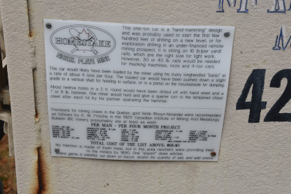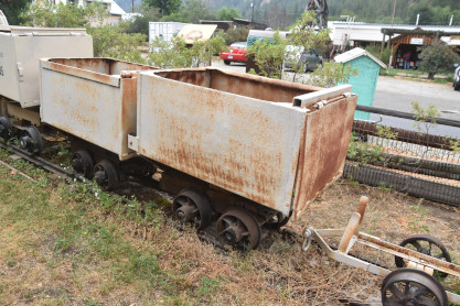 The next stop was in Hedley, where mining was a large industry for most of the 20th century. Gold was found on Nickel Plate mountain in 1898. The ore was rich but it had to be extracted from the host rock by crushing and chemical treatment. By 1903, men were digging the first of 74.5 miles of tunnels into the mountain and building a tramway and a 40 stamp mill. Men climbed the mountain each day to go to work until a second town for 200 people was built on the mountain top. Nickel Plate operated as an underground mine until 1955. The average price of gold over those years had been about $40 per ounce. Houses, rail tracks and the mill machinery were removed. The mine was reopened in 1986 and worked for ten years as an open pit mine.