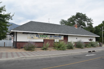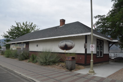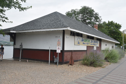 Canadian Pacific Railway Osoyoos station built in 1944 by the Kettle Valley Railway, a CPR subsidiary and now home of the Lake Osoyoos Sailing Club. This railway section ran 9.3 miles from the Haynes Packing House just south of Oliver to the Osoyoos Co-operative Fruit and Vegetable Growers Packing House where Watermark Beach Resort is located today.