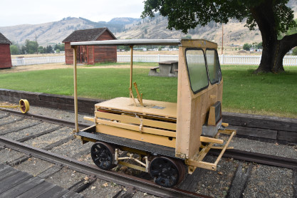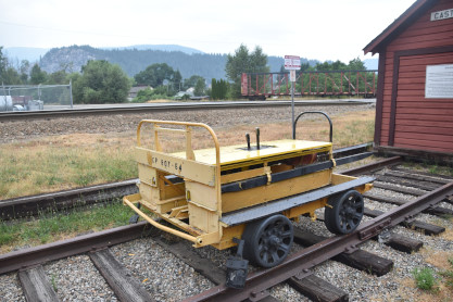10 wheeled 33 gauge made of speeder parts to commemorate the loss of Canadian Pacific 2-8-0 3512 in Slocan Lake on December 31, 1946.
