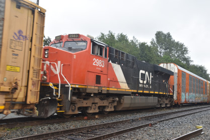 Mid-train helper Canadian National ES44AC 2983, built by General Electric in 2016 on a freight that passed through while we were there. Now we will explore this station.