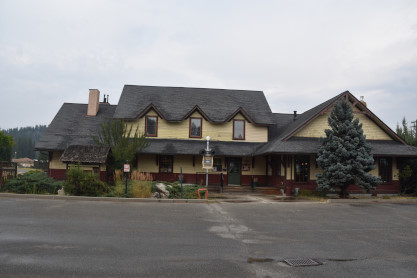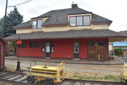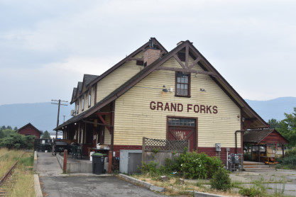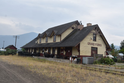 Canadian Pacific Grand Forks station built circa 1900. It not only is it one of the few wood framed stations which have survived in the province, but it is also the oldest survivor which has not been relocated. Today the old tracks of the Columbia and Western Railway which run past the station are long gone but the track bed is now the Columbia and Western Rails to Trails trail, which is part of the Trans Canada Trail, the world's longest hiking and biking trail. The station has been designated a heritage railway station by Parks Canada.
