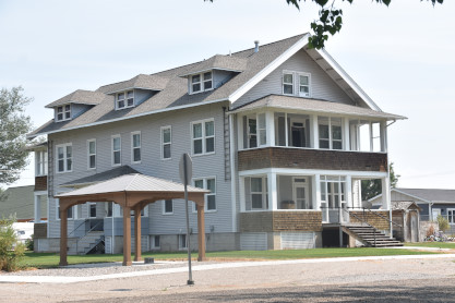 The former Chicago, Milwaukee, St. Paul and Pacific Three Forks Hospital built by the railroad in 1915, now apartments. We continued our eastward journey with Elizabeth driving.