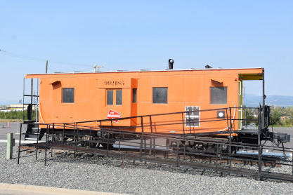 I drove us Three Forks and found a caboose in John Q. Adams Milwaukee Railroad Park. Named for the founder of the City of Three Forks, this park houses the old Trident Depot building. The Three Forks Historical Society saved the depot when Montana Rail Link dissolved the old Trident station. It was an original icon in the former town of Trident (which is now all gone).
