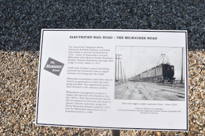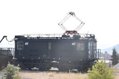 The Butte, Anaconda & Pacific Railway train at the Anselmo is the only remaining artifact of the first electrified heavy haul engine that served as the prototype for electrifying rail engines throughout the country. Ore was raised from the mine to the tipple structure on the side of the headframe, from where it was dumped into train cars below. The trains, which once laced together all the mines, transported copper ore to the town of Anaconda, where it was concentrated and smelted at the huge Washoe Smelter.