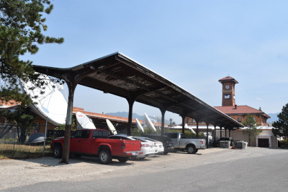 Northern Pacific Butte station built in 1906. The first railroad to reach Montana was the Union Pacific, which in 1881 established a terminal one mile south of Uptown. After the Northern Pacific reached Butte in 1890, it shared the Union Pacific's wooden passenger depot. As Butte grew from town to metropolis, its businessmen lobbied for construction of a grand, union station. The Great Northern (which arrived in Butte in the late 1880's) refused, so in 1906, the Northern Pacific replaced the 1881 depot with these three hipped-roof buildings. The center structure originally boasted a covered overhang shading the platform. It housed a three-hundred-person general waiting room; men's smoking and ladies' private rooms; and ticket and telegraph offices. A stairway led upstairs to a gallery, designed as a public "promenade and lounging place", as well as to the railroad's administrative offices. The western building housed the baggage and freight offices; the eastern building housed the express offices and a restaurant. By 1916, twelve Northern Pacific and four Union Pacific passenger trains stopped daily, in addition to "specials", like their summer Sunday fishing train. The last passenger train left the station in 1979.