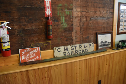 Milwaukee Road signs and a picture of Little Joes.