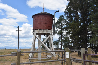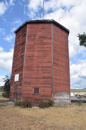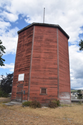 .Canadian Pacific Cranbrook water tower built in 1946 and moved here in 1994. Its original location was across the tracks and about 1,500 feet southwest closer to the railway's roundhouse.
