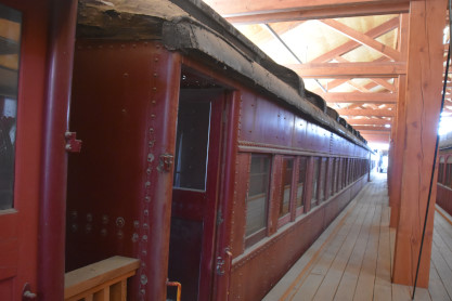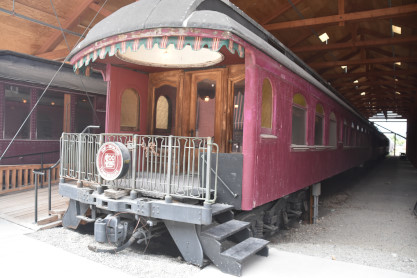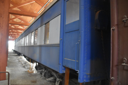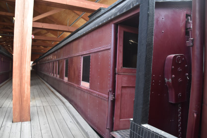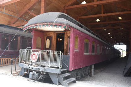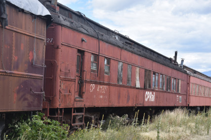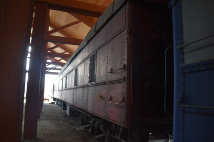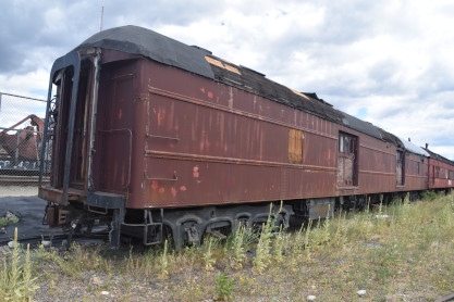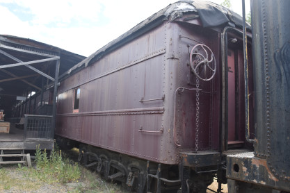 Canadian Pacific first class coach 52, ex. Mine Assay Office (Blairmore, Alberta) 1986, exx. Province of Alberta Mine Rescue Car 1 1930, exxx. Canadian Pacific second class coach 1816 1913, exxxx. Canadian Pacific second class coach 843 1911, nee Canadian Pacifc first class coach 52 1906, built by Harlan and Hollingsworth in 1882. It is the oldest known extant car built for Canadian Pacific.