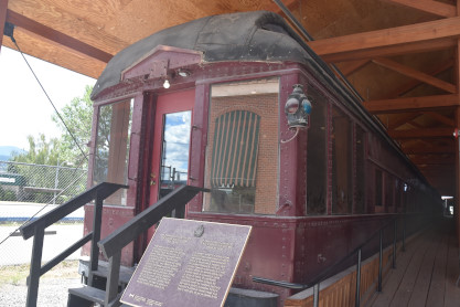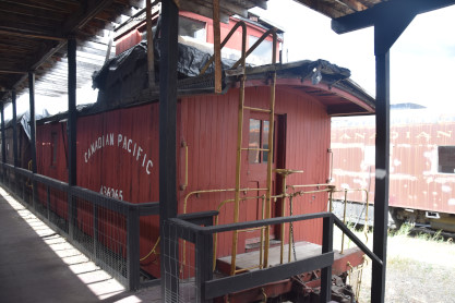 Canadian Pacific wooden caboose 436965, built by the railway in 1928. After many years bringing up the rear of regular freight trains out of Cranbrook, it was retired in 1977 and scheduled for scrapping. The Cranbrook Foundation rescued the car for $500 and started to refurbish it. Many of the items inside were assembled and placed there as permanent display material by the Railway and its Cranbrook employees to mark Canadian Pacific's centennial of incorporation in 1981.