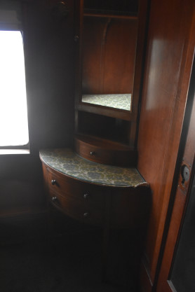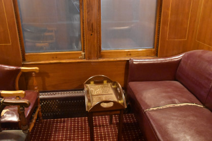 Canadian Pacific official car "Strathcona", ex. Conklin and Garrett Shows 002 1990, exx. Canadian Pacific 75 1974, nee Canadian Pacific "Strathcona" 1968, built by the railway in 1927 as an executive night car for the Board of Directors. This car has not yet been restored and shows visitors the pre-restoration condition.
