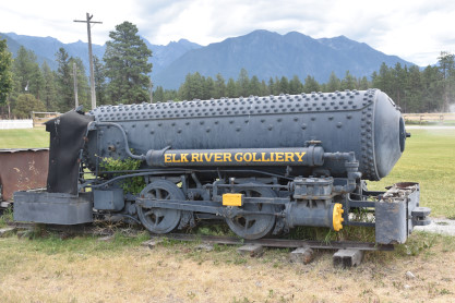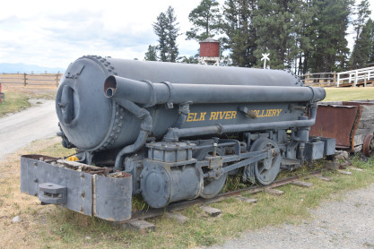 Elizabeth drove us to Fort Steele, a National Heritage Site, about twenty minutes away. While we knew the train was not operating, neither of us had ever been here before but we explored the train-related items only. On the pathway to the parking area is Elk River Colliery 36 inch gauge 0-4-0A 1, ex. Crowsnest Pass Coal 5, nee Hosmer Coal Mines 6, built by H.K. Porter in 1910.