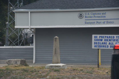 The International Border between the United States and Canada. At the border, the Customs agent asked us if we were bringing any fruit in the country and we responded no!