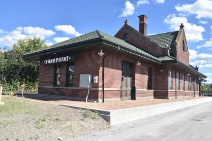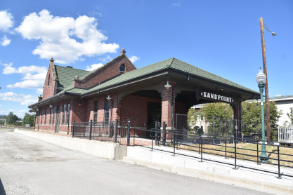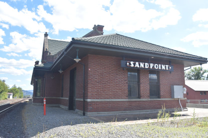 Northern Pacific Sandpoint station built in 1916. In 1882 the Northern Pacific Railroad rumbled to a stop here. The arrival opened a trade route for timber from North Idaho to the east coast and freight to the west coast. Passengers arrived and small communities sprung up along the tracks. The railroad was a driving force behind the settling of North Idaho.