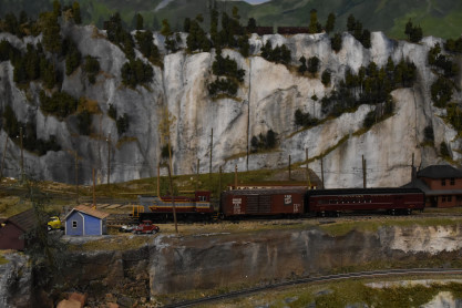After discovering stored pieces of the original model in 2010, a new group of volunteers was inspired to resurrect the project. Parts of the original railway have been incorporated into the current model along with upgraded structures, new custom painted backdrops, and hundreds of rejuvenated trees. In its present form, the layout depicts scenes from Bull River westwards through Cranbrook to Kootenay Landing where the rails once ended and all freight and passengers had to be transferred for ongoing travel by barge or steamboat. Completion of the railway link to Nelson in 1931 brought an end to the steamboat era but sets the stage for the model railway which spans a period of more than two decades including the introduction of diesel locomotives in the mid-1950's. In addition to Kootenay Landing, major scenes include Moyle Lake, the Cranbrook yard and roundhouse, and a partial view of the Bull River dam with its log flume and sawmill.