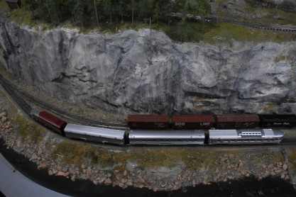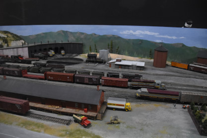 The HO scale layout has been constructed by a dedicated group of modelers intent on recreating a section of the Canadian Pacific Railway's southern mainline through the Kootenays. Travelling westward in a clockwise direction, the model depicts scenes from Bull River through Isadore Canyon and Cranbrook to Kootenay Landing. At Kootenay Landing the rail ended and all freight and passengers had to be transferred for ongoing travel by barge or steamboat. Completion of the railway link to Nelson in 1931 brought an end to the steamboat era but sets the stage for the model railway which spans a period of more than two decades including the introduction of diesel locomotives in the mid-1950's. Major scenes include Kootenay Landing, Moyie Lake, the Cranbrook yard and roundhouse, and a partial view of the Bull River dam with its log flume and sawmill.