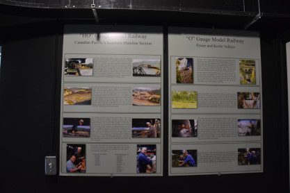 HO Model Railway Canadian Pacific Southern mainline segment and G scale Fraser and Kettle Valley model railway information boards.