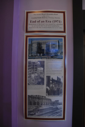 With the notable exception of the Royal Alexandra Hotel, built in Winnipeg in 1906, these hotels remain in operation today. The Royal Alexandra, a rare example of Edwardian architecture amongst the CP hotels, was considered the social centerpiece of Winnipeg for nearly sixty years before its closure in 1967. Four years later it was demolished with only the Grand Café of the hotel, carefully disassembled into hundreds of pieces and stored in a semi- trailer, surviving.