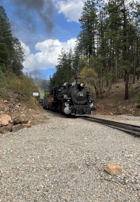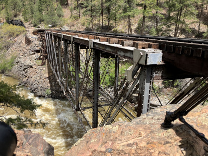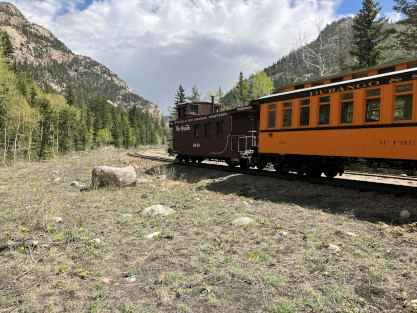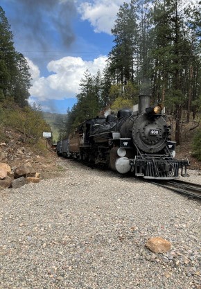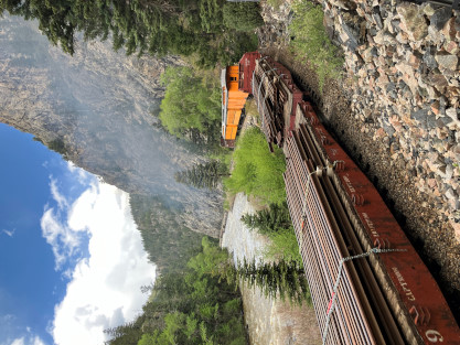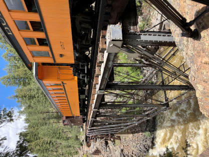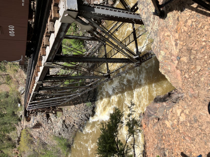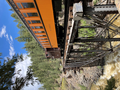 Bryan. Russell, our conductor, was his usual standard of excellence and worked fantastically with Dak. After our train dropped the eight passengers at Rockwood, it returned us all to to Durango. We left the parking lot and returned to the hotel for a few minutes before going to Seriously Texas Barbeque where I had chicken and Elizabeth had a pulled pork sandwich. We returned to the hotel and I finished the previous day's