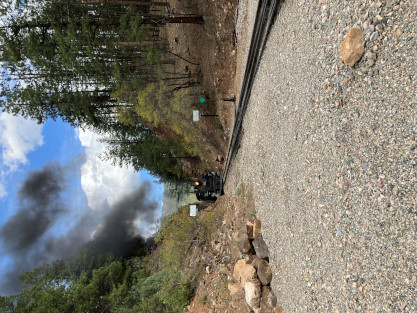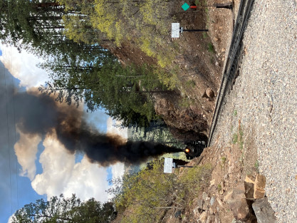 the crossing gates were almost taken out due to a car trying to cross the tracks. Later, we took water at Hermosa then ran non-stop to Granite Rock for the first photo runby of the day. Reverse move one.