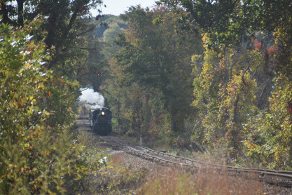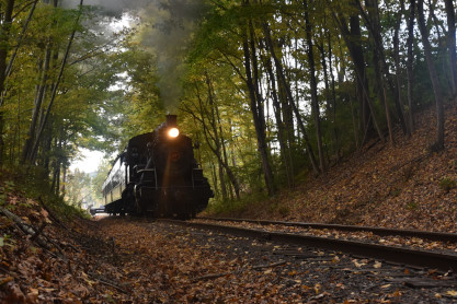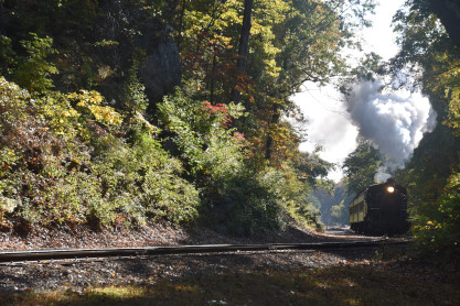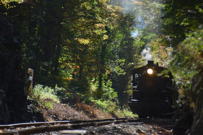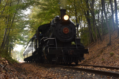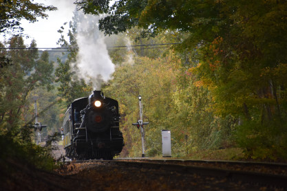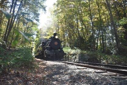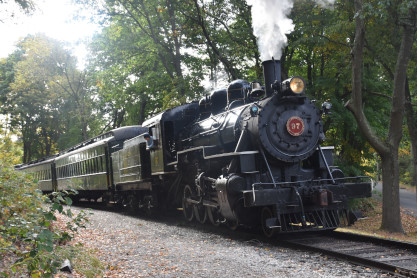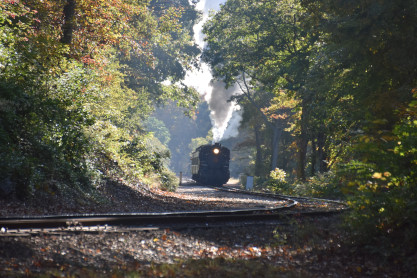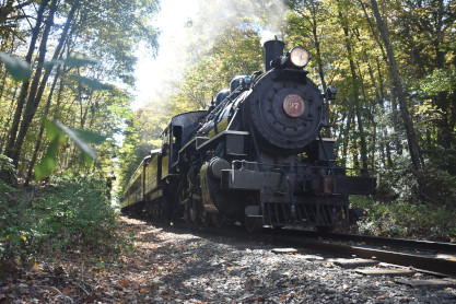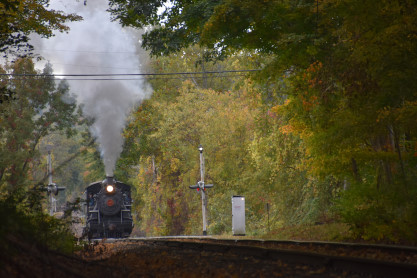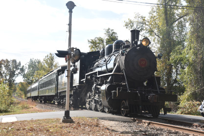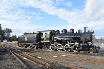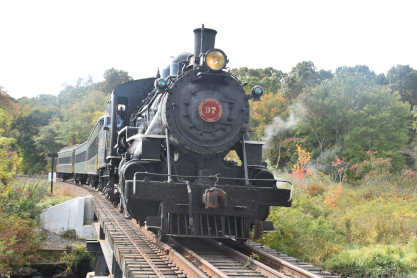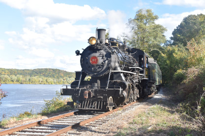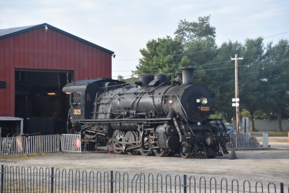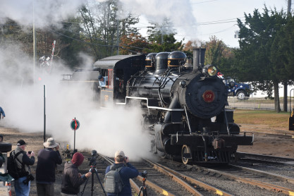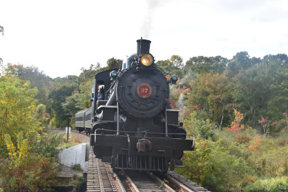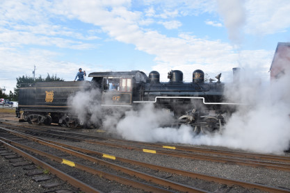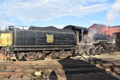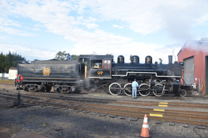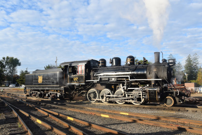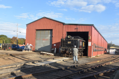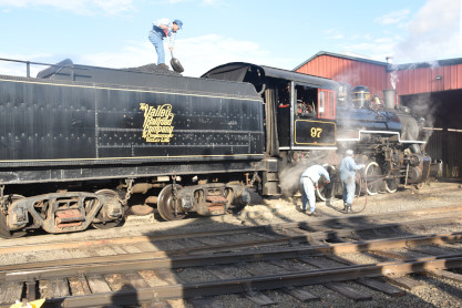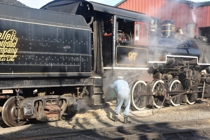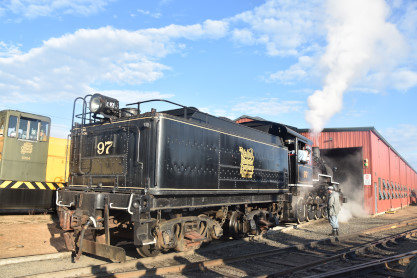 Valley Railroad 2-8-0 97 reversed out of the engine house.