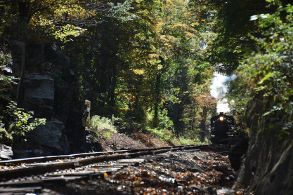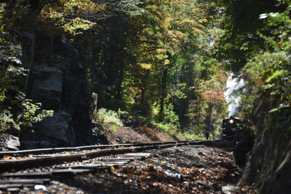 Photo runby ten at the rock cut at Canfield Woods, Milepost 6.0.