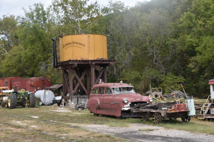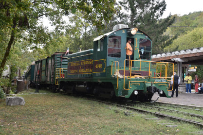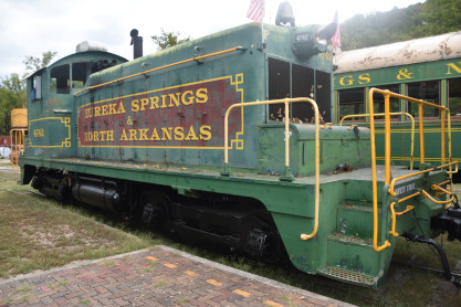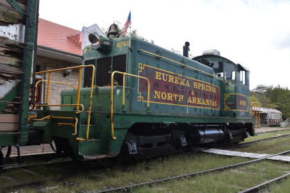 Eureka Springs and North Arkansas RailroadThe Eureka Springs & North Arkansas Railway was started by the late Robert Dortch, Jr., and his wife Mary Jane in 1981. Robert Dortch, Sr., had built the Scott and Bearskin Lake Railroad as part of the Plantation Agriculture Museum near Scott, Arkansas, in the 1960s. After his death, the family closed the railroad and began moving the equipment to Eureka Springs (Eureka, for locals). Eventually, a 2.5 mile railroad was built, requiring several trestles over Leatherwood Creek. The line features the former Fort Smith Frisco turntable at the south end at Eureka, and a wye at the north end at Junction. The railroad leases the former Missouri & North Arkansas stone depot (built 1913) at Eureka, \ and added a water tower and a small yard. They also built a commissary adjacent to the old ice house and electric plant building to the south to prepare meals for the luncheon and dinner trains. The railroad was used in the 1982 television mini-series The Blue and the Gray.