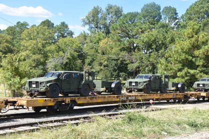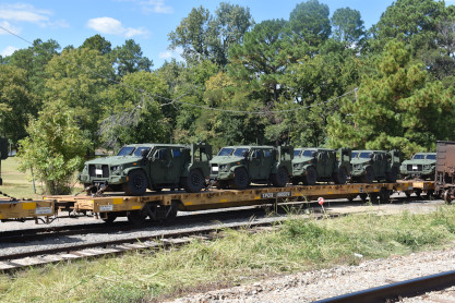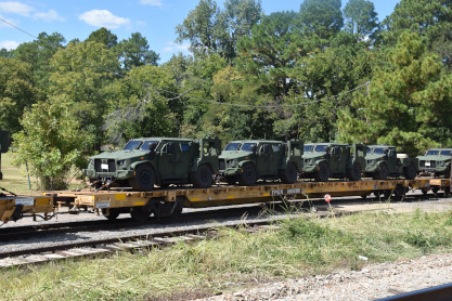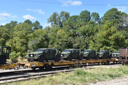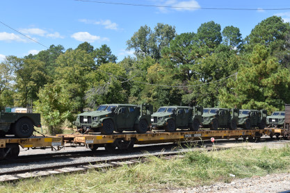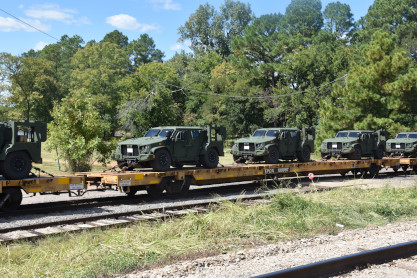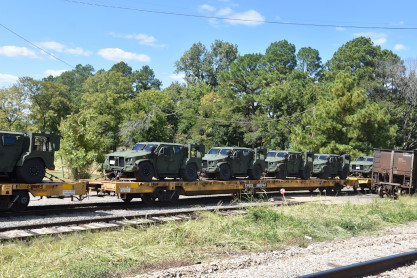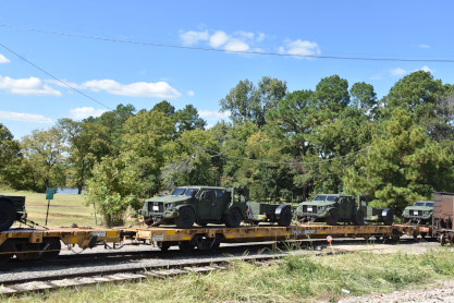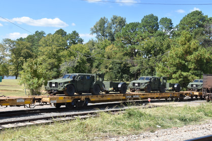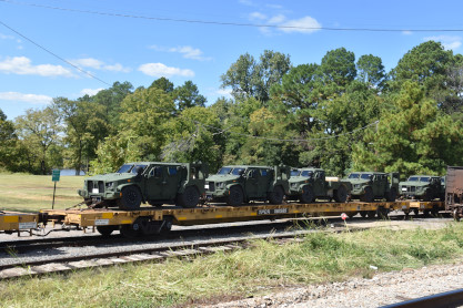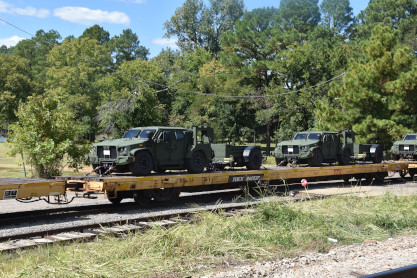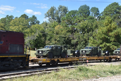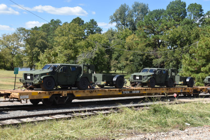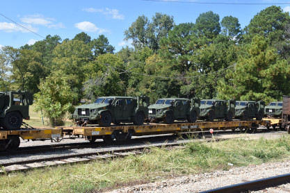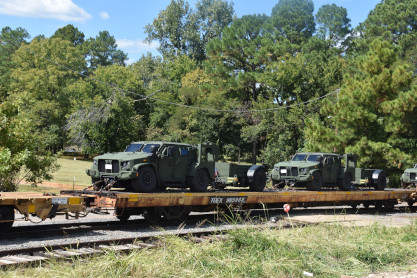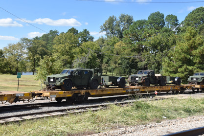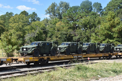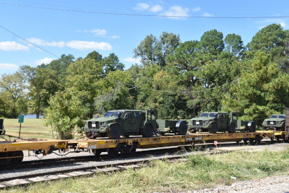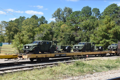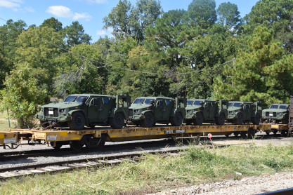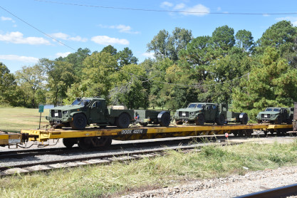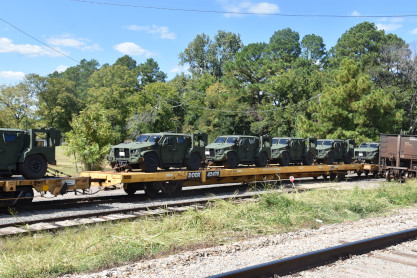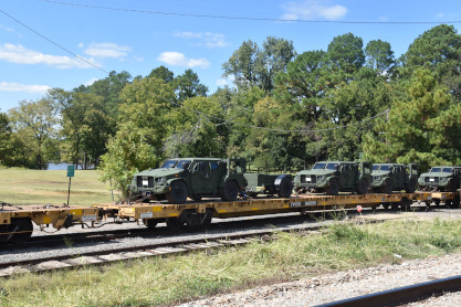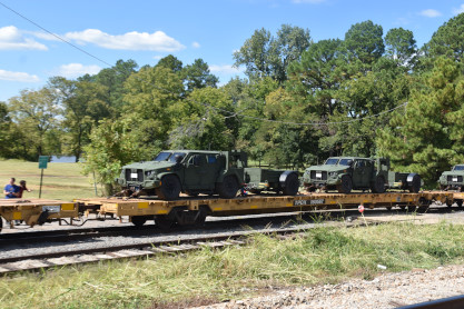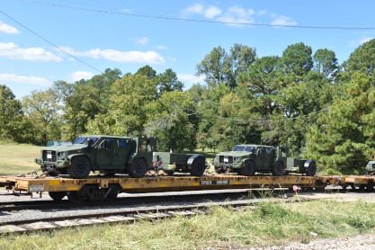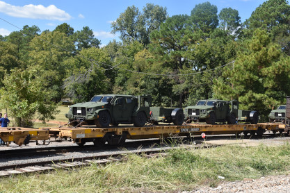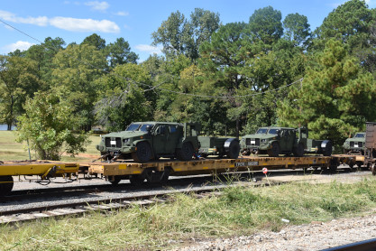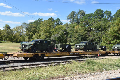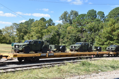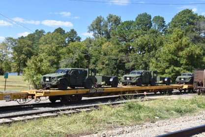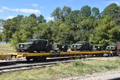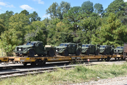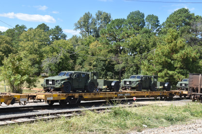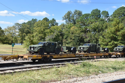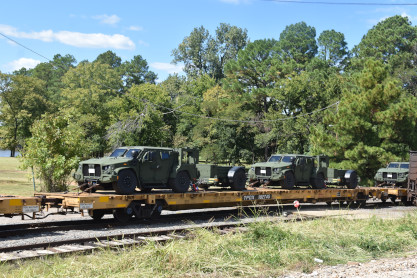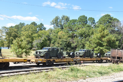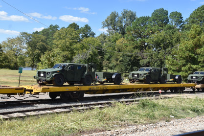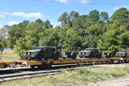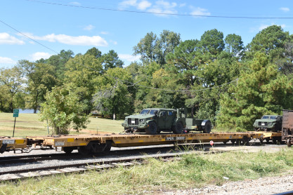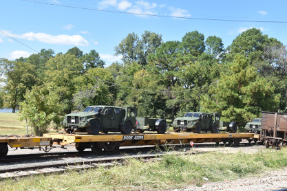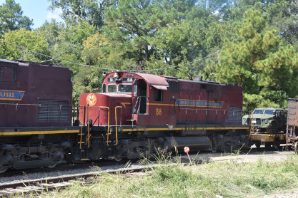 United States Air Force 44 ton switcher 1246 built by General Electric in January 1953. It was at that point we heard rumblings and walked over to the mainline to investigate. Here came an Arkansas and Missouri Railroad train with a very long string of military equipment.