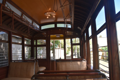 Cooperativa de Transportes Urbanos y Sub-Urbanos open bench streetcar 9, ex. Lake Shore Electric Railway 9 2009, exx. Trolleyville, U.S.A 9 2006, exxx. Cooperativa de Transportes Urbanos y Sub-Urbanos 9 1961, exxxx. Cooperativa de Tranviariosy Similares del Puerto de Veracruz 9 1939, nee Luz Fuerza y Traccion de Veracruz 9 1932, built by J.G. Brill in 1908.