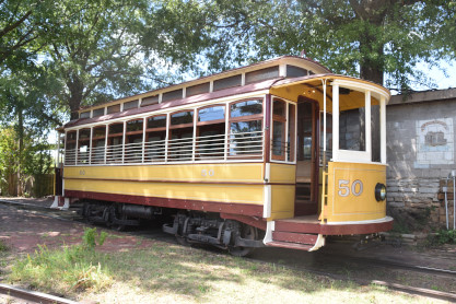 Hot Springs Street Railway double-ended double-truck open platform streetcar 50 built by St. Louis Car Company in 1904. The conference attendees rode this car but unfortunately it cannot negotiate the tight curves of the route.