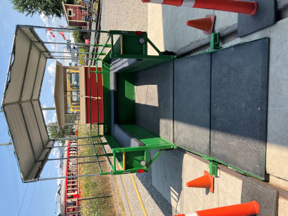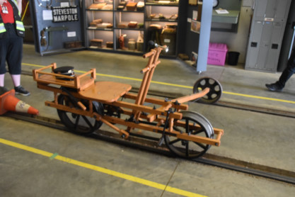 The ramp of the accessible speeder carriage. The fourth and final ride that makes up the Heritage Rail Adventure is a ride on the Honey Bee speeder.