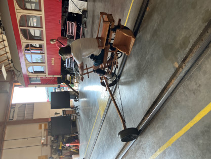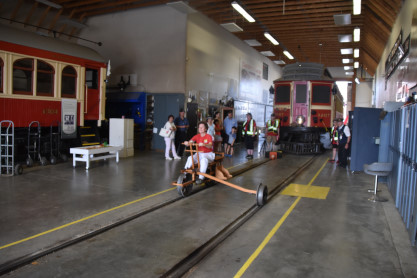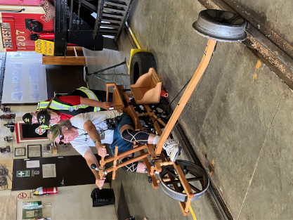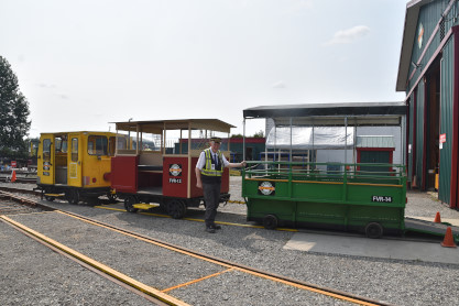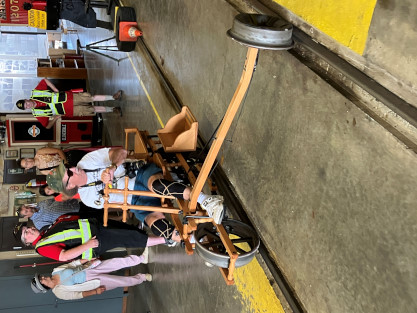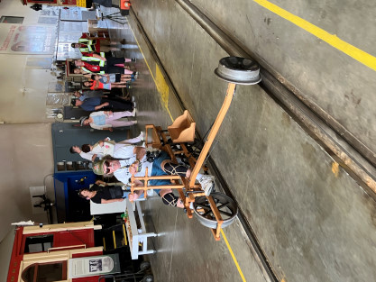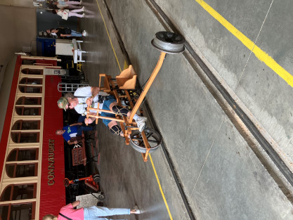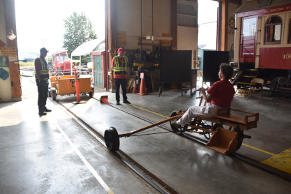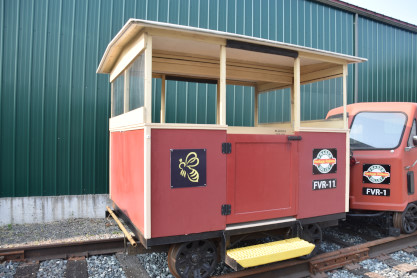 The accessible/low floor speeder carriage, 14, was designed and built by the organization's skilled craftsmen and can carry up to twelve passengers. It was brought into service on July 31, 2023.