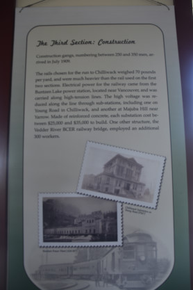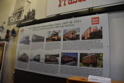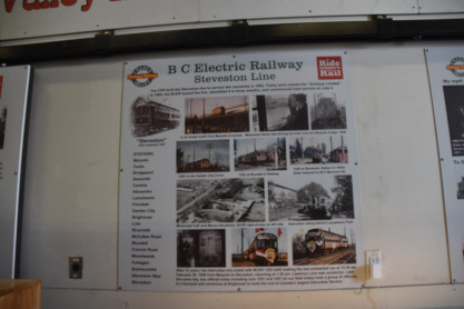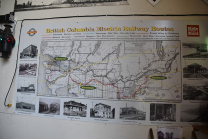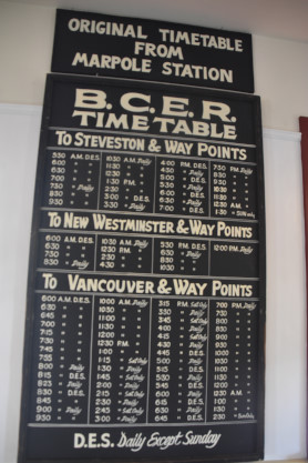 BC Electric Railway had three lines - Central Park, Fraser Valley and Marpole-Steveston - and photographs from each line are displayed in the museum room. Also here is the original timetable from the Marpole station.