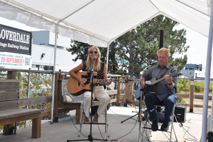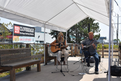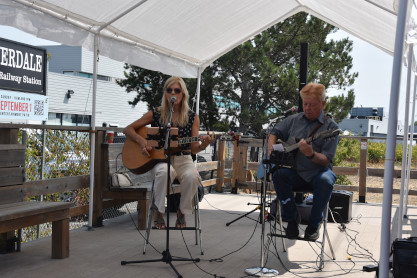 Dennis and Joni, today's duo at the Summer Music Festival. Dennis Pook and Joni Anderson play music with a big emphasis on "Vocal Harmonies". They have been performing together for close to 20 years using their two guitars and their two voices to entertain audiences young and old. They play a range of material from folk, country, blues, to pop and draw from a wide range of songs from the last 50 years!